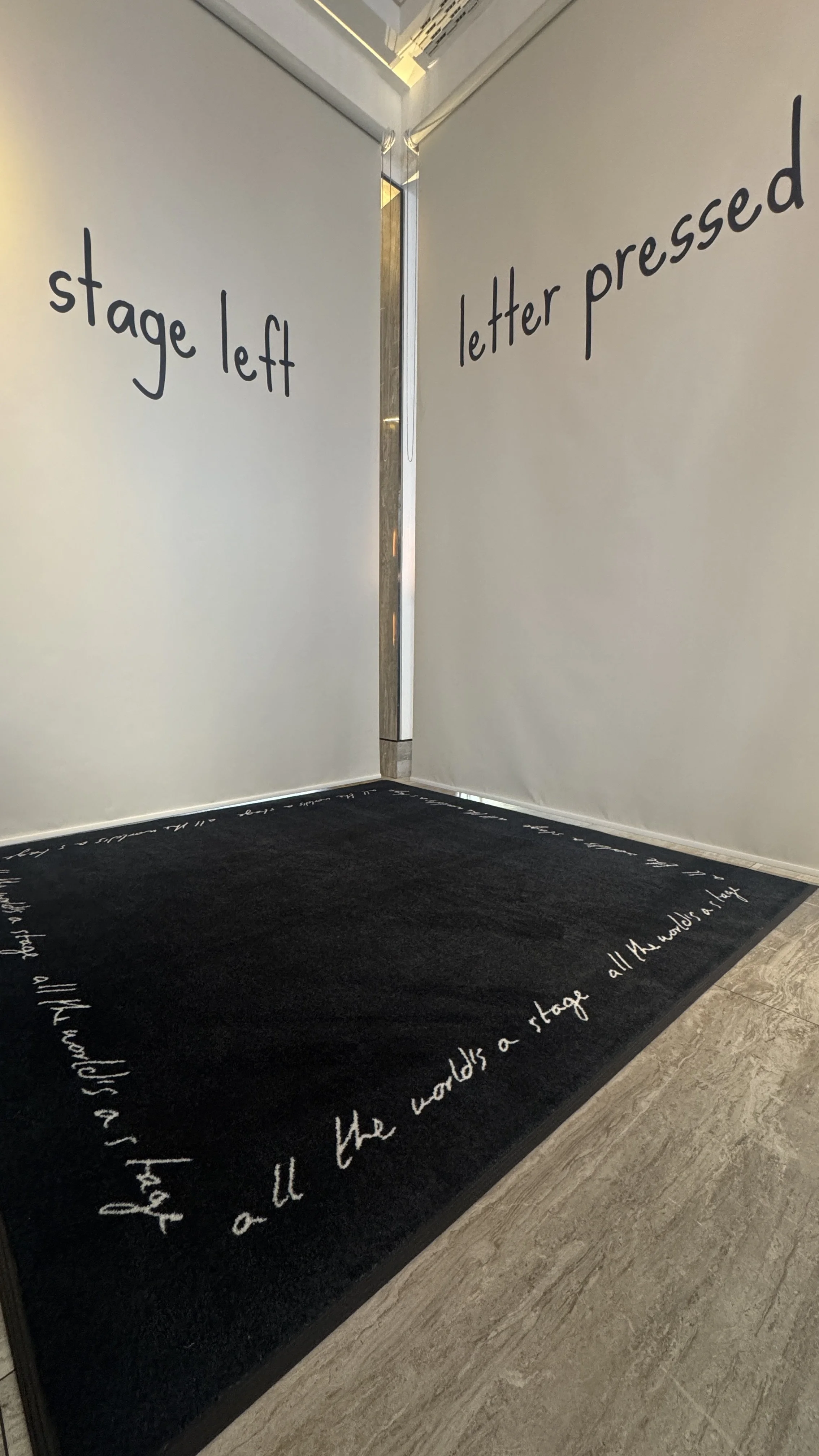 My practice has often incorporated text based media and I drew on this to make a series of works for HART Shoreditch that create a dialogue between the structure of Shakespeare’s writing and the architecture of this beautiful building